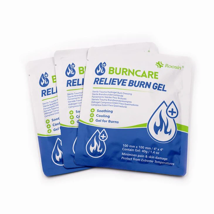 Sterilni zavoji za opekotine mogu se koristiti za smanjenje boli i traume rana od požara, plamena, opekotina, hemijskih i električnih ozljeda. Međutim, kod hemijskih opekotina, rana se mora temeljito irigirati i neutralizirati prije upotrebe gela. Kod električnih opekotina, struja se mora isključiti prije upotrebe gela jer je otopina na bazi vode-i provodi struju.